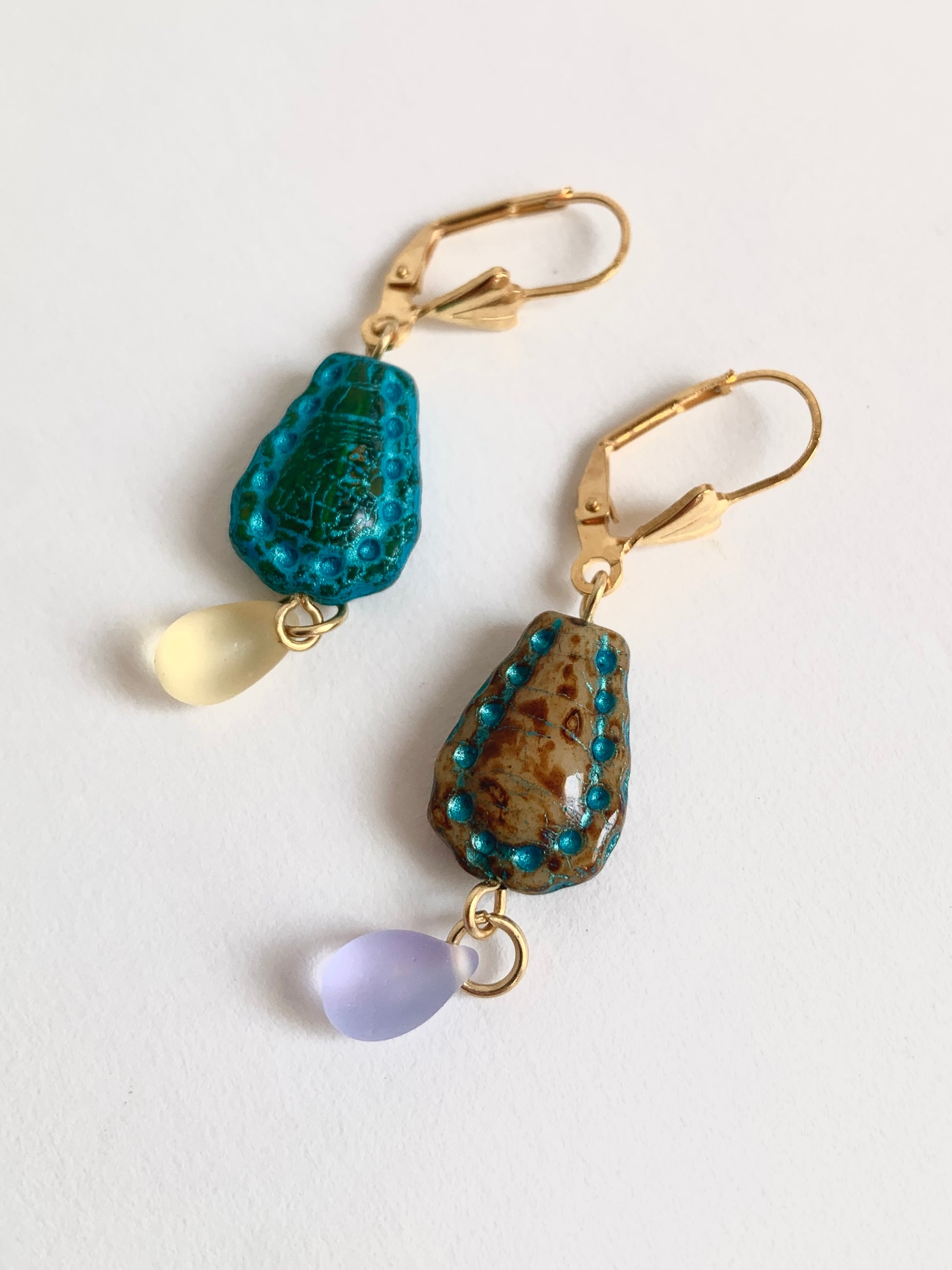 Deux âmes, deux teintes, une harmonie. Ce duo Larmes Dépareillées « Duo Lunaire » incarne la beauté de la dissemblance : d’un côté, la profondeur minérale et céleste ; de l’autre, la clarté douce d’un clair de lune. Chacune de ces boucles raconte une histoire différente, mais toutes deux vibrent à l’unisson. Une paire pour celles qui n’ont pas peur d’être inclassables.