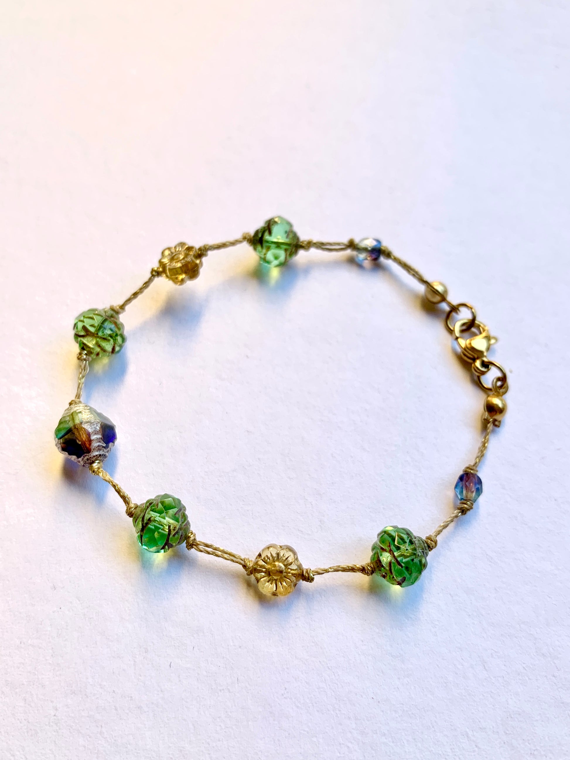 Perles de verre Tchèque montées sur une corde cirée résistante: