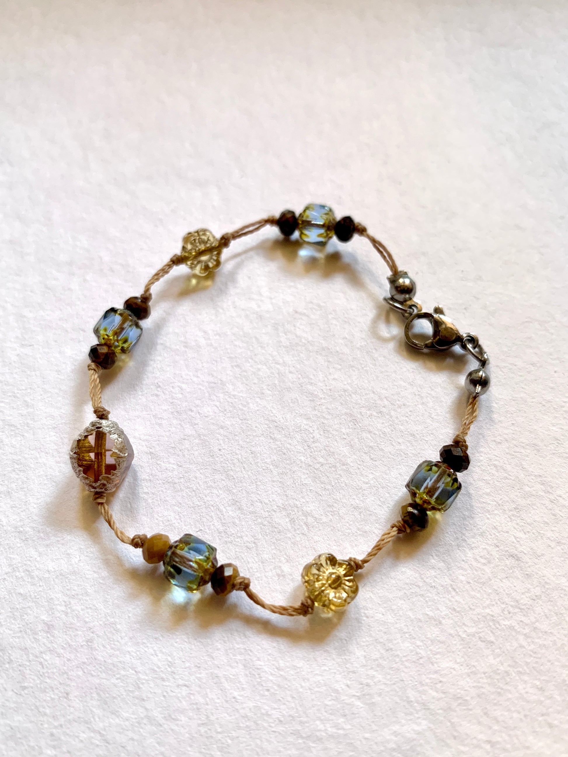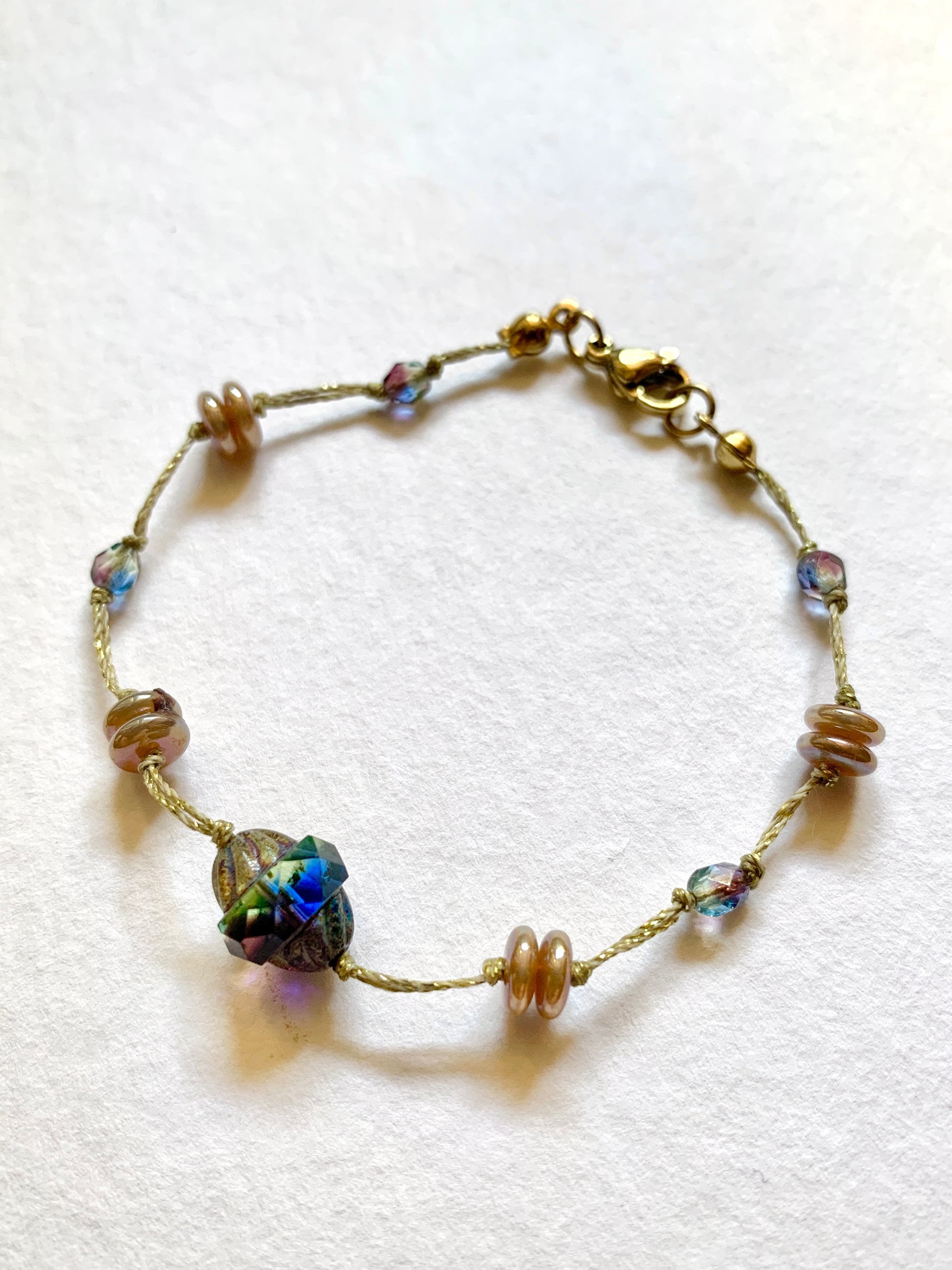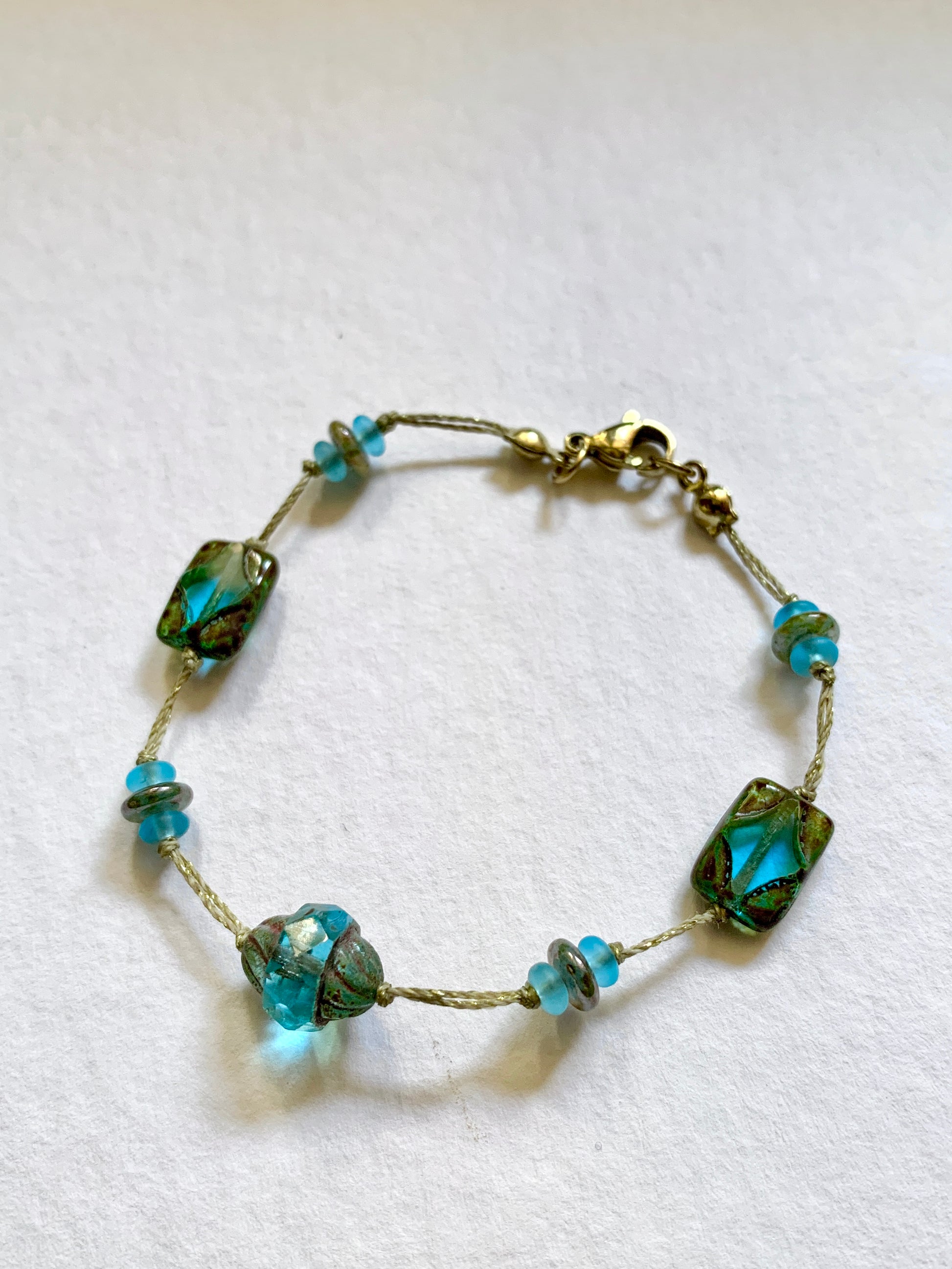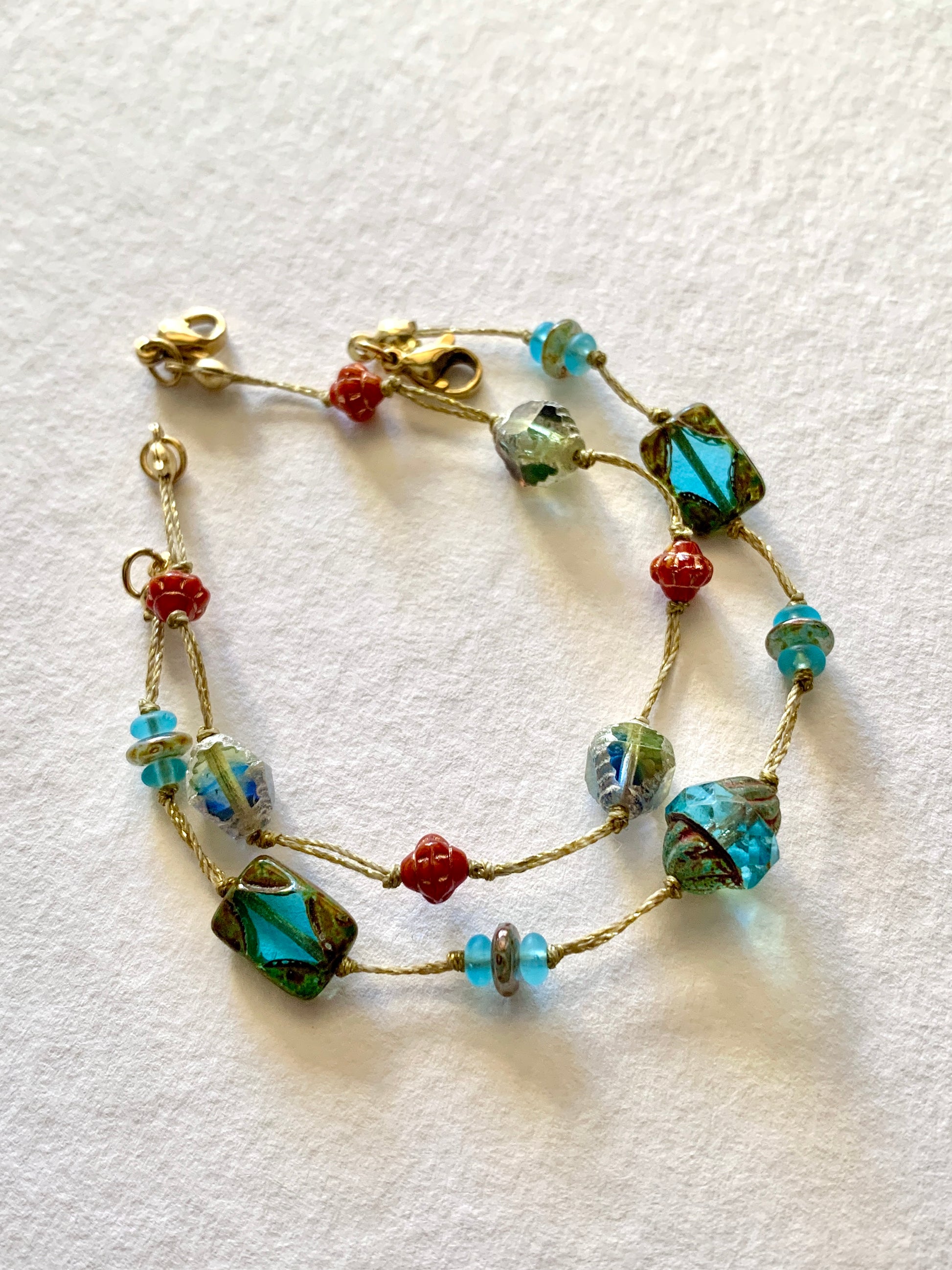 Perles de verre Tchèque montées sur une corde cirée résistante.
