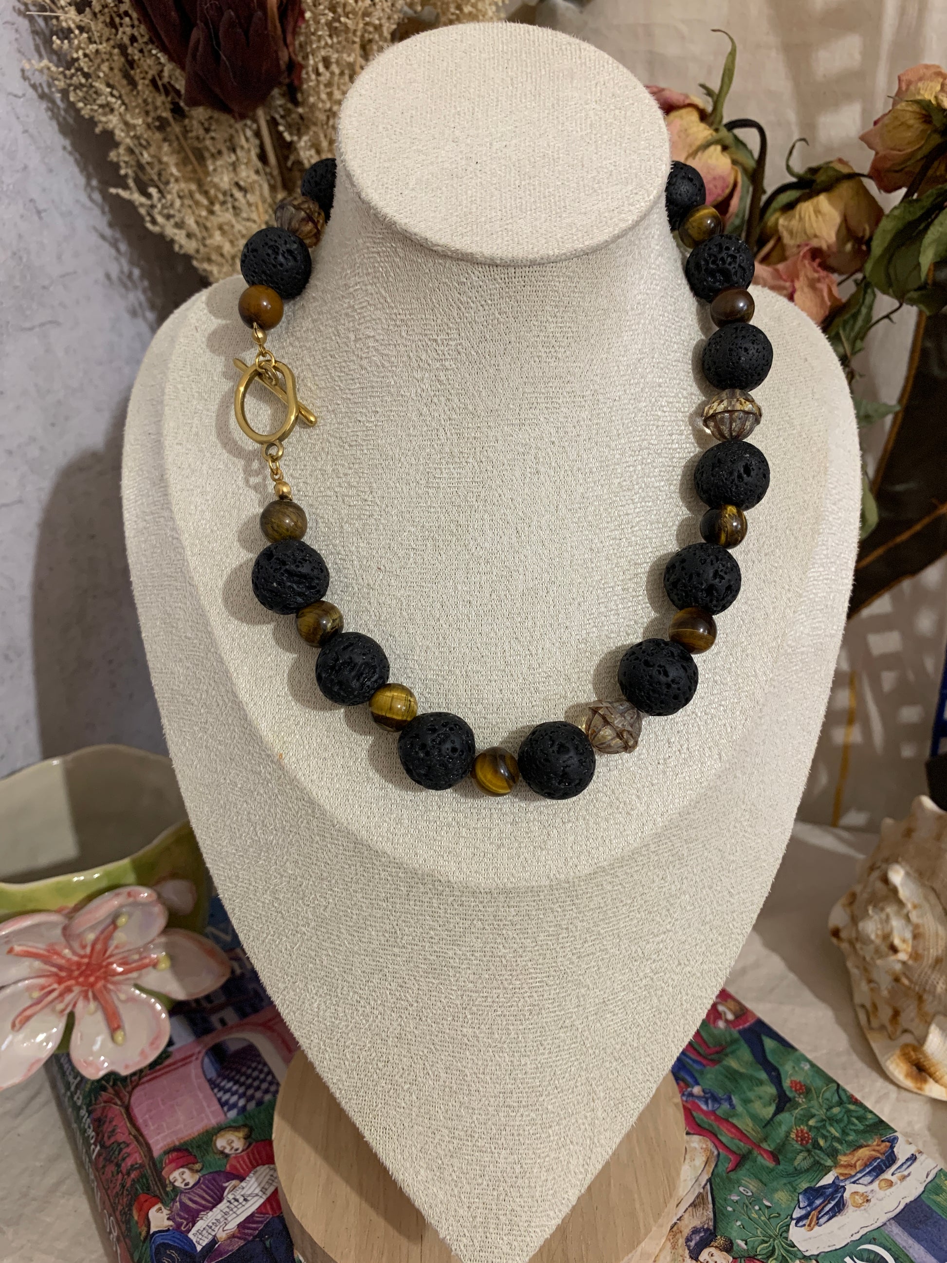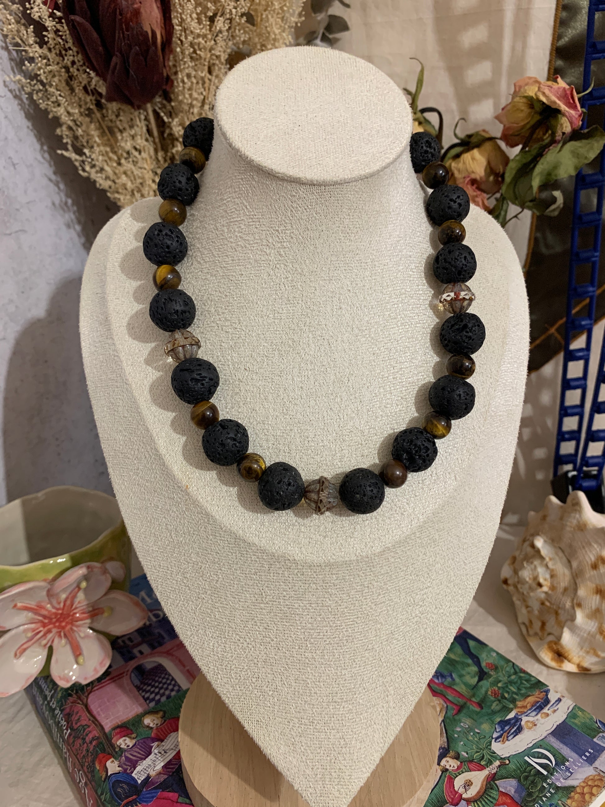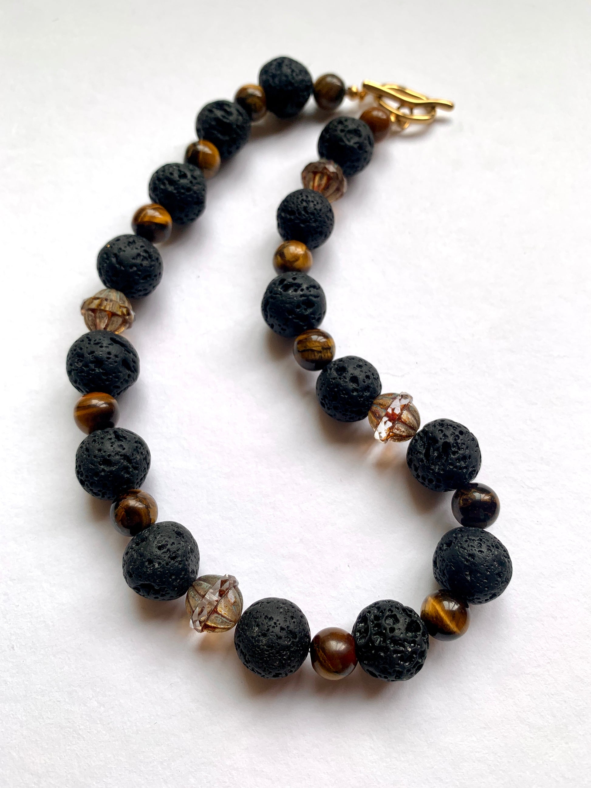 Perles de verre, Oeil de tigre et Pierre de lave.