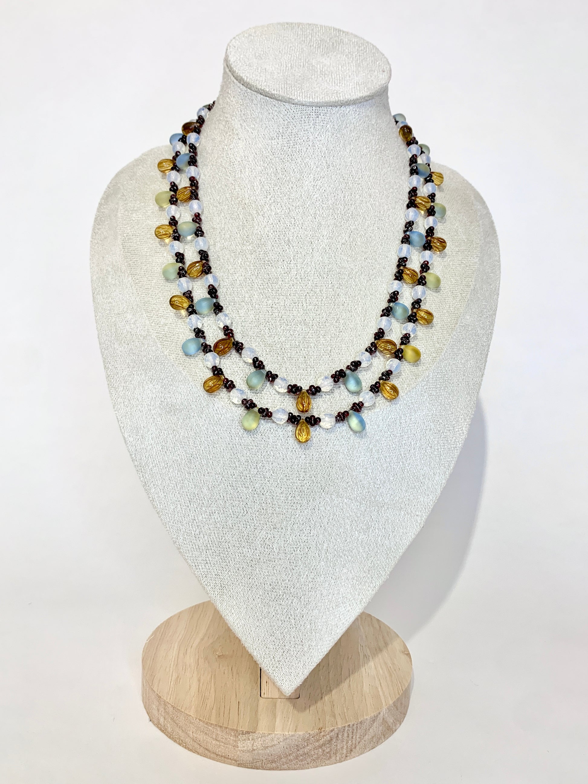 Les perles de verre sont délicates, comme des petites gouttes précieuses, elles demandent de l'attention. Evitez de le jeter au fond d'un sac ou de le faire tomber. Le verre aussi joli soit-il, reste fragile.