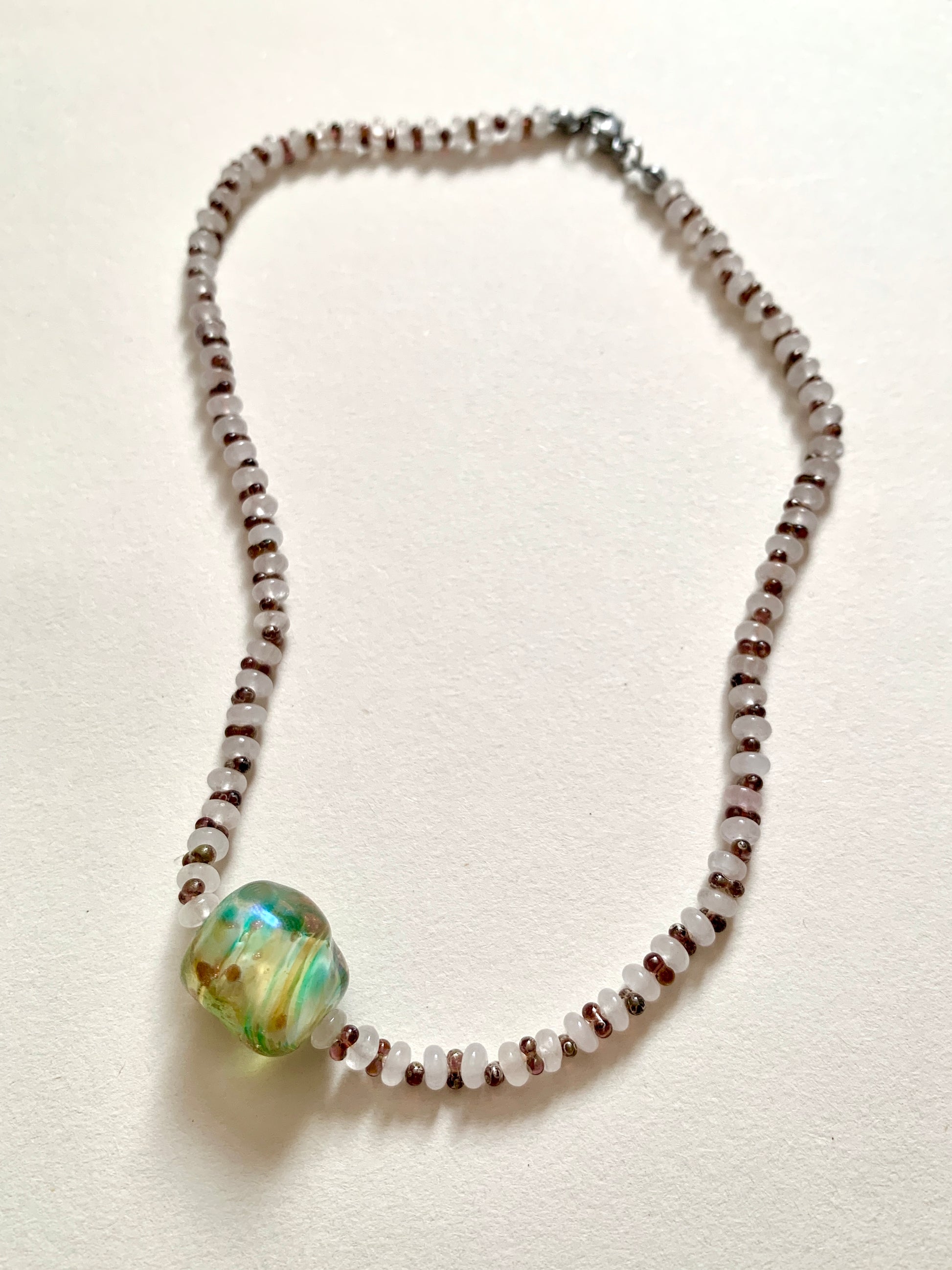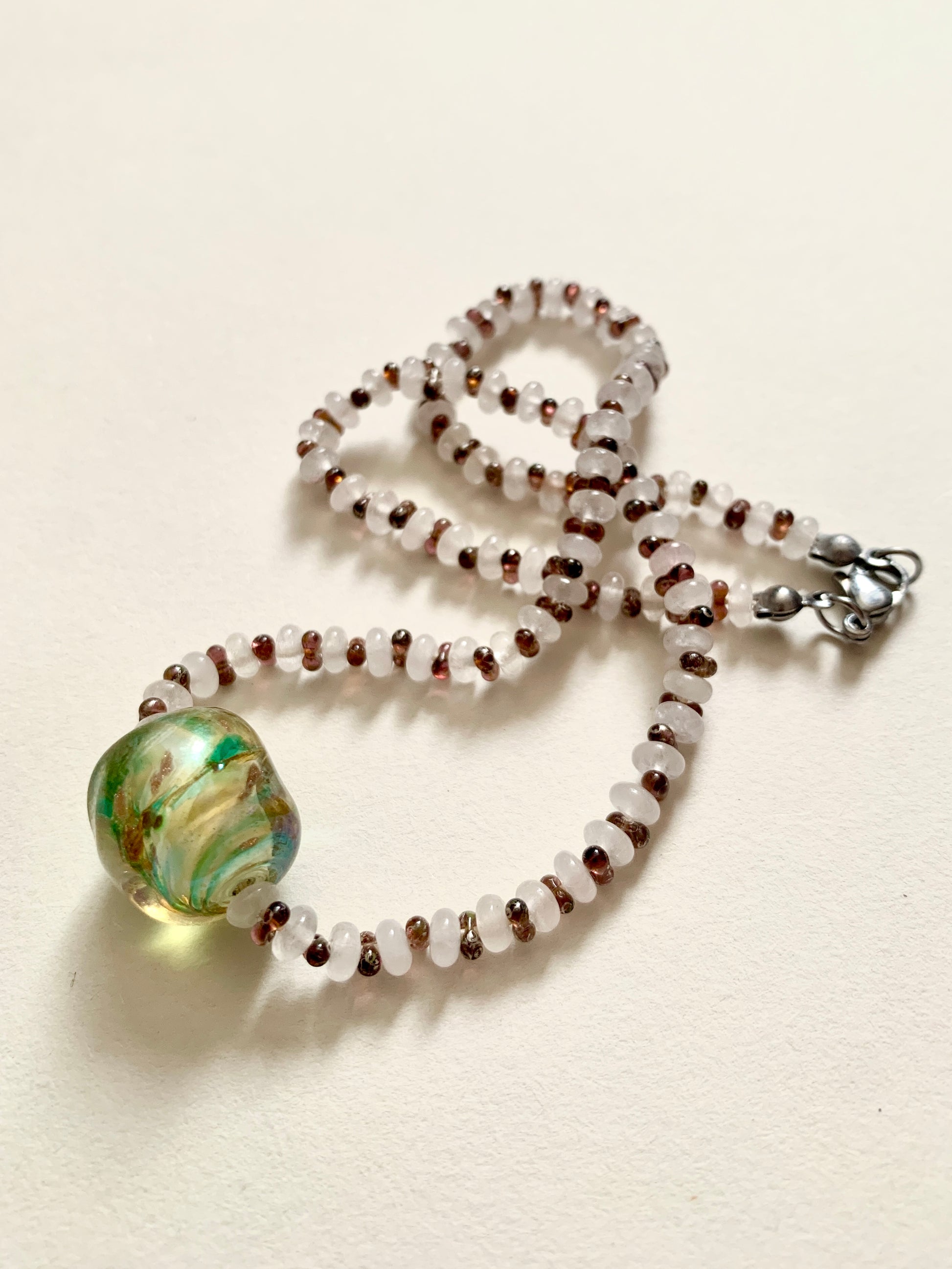 Perle de verre de Murano ancienne, perles de verre et Quartz blanc.