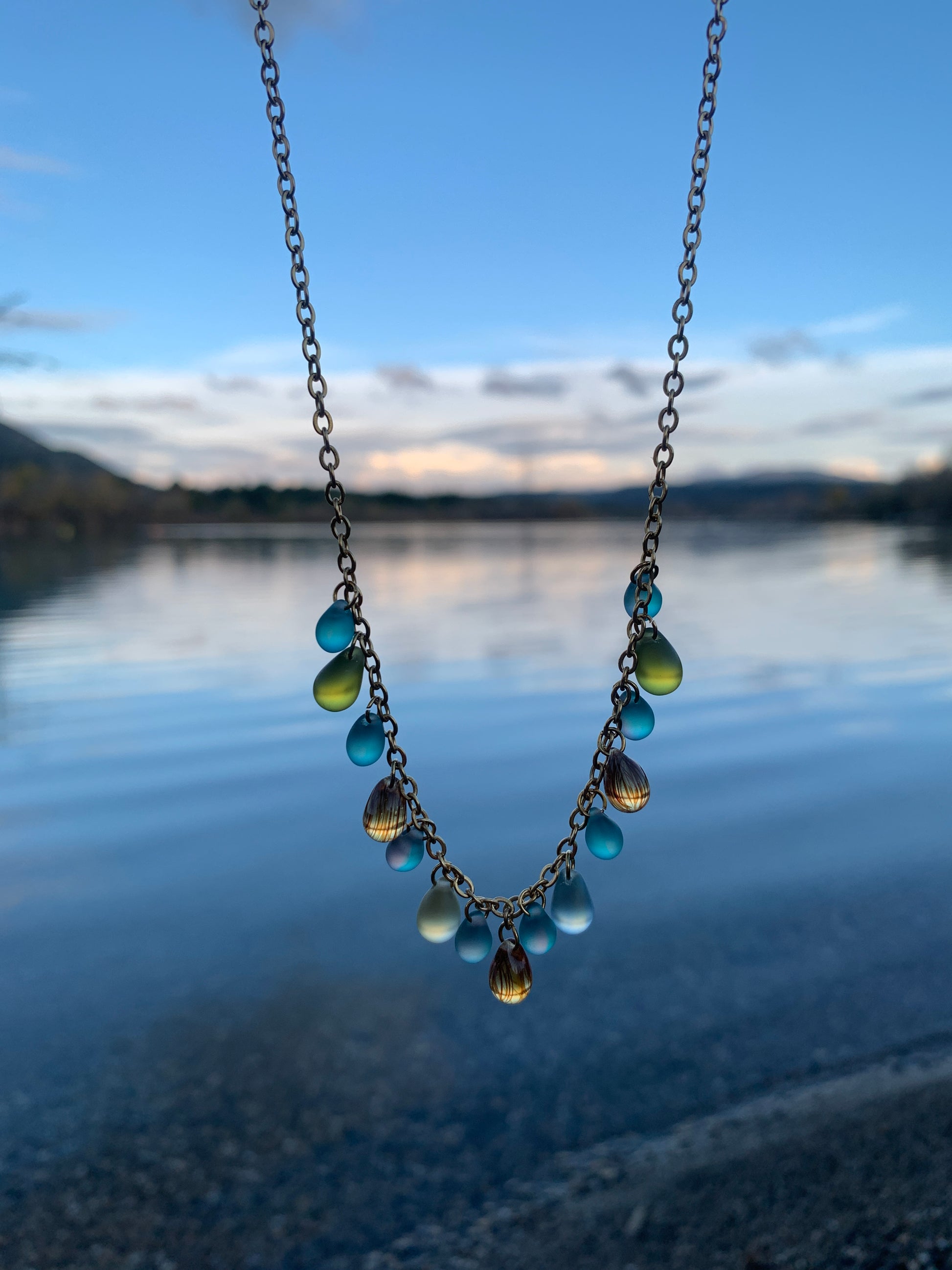 Les perles de verre sont délicates, comme des petites gouttes précieuses, elles demandent de l'attention. Evitez de le jeter au fond d'un sac ou de le faire tomber. Le verre aussi joli soit-il, reste fragile.