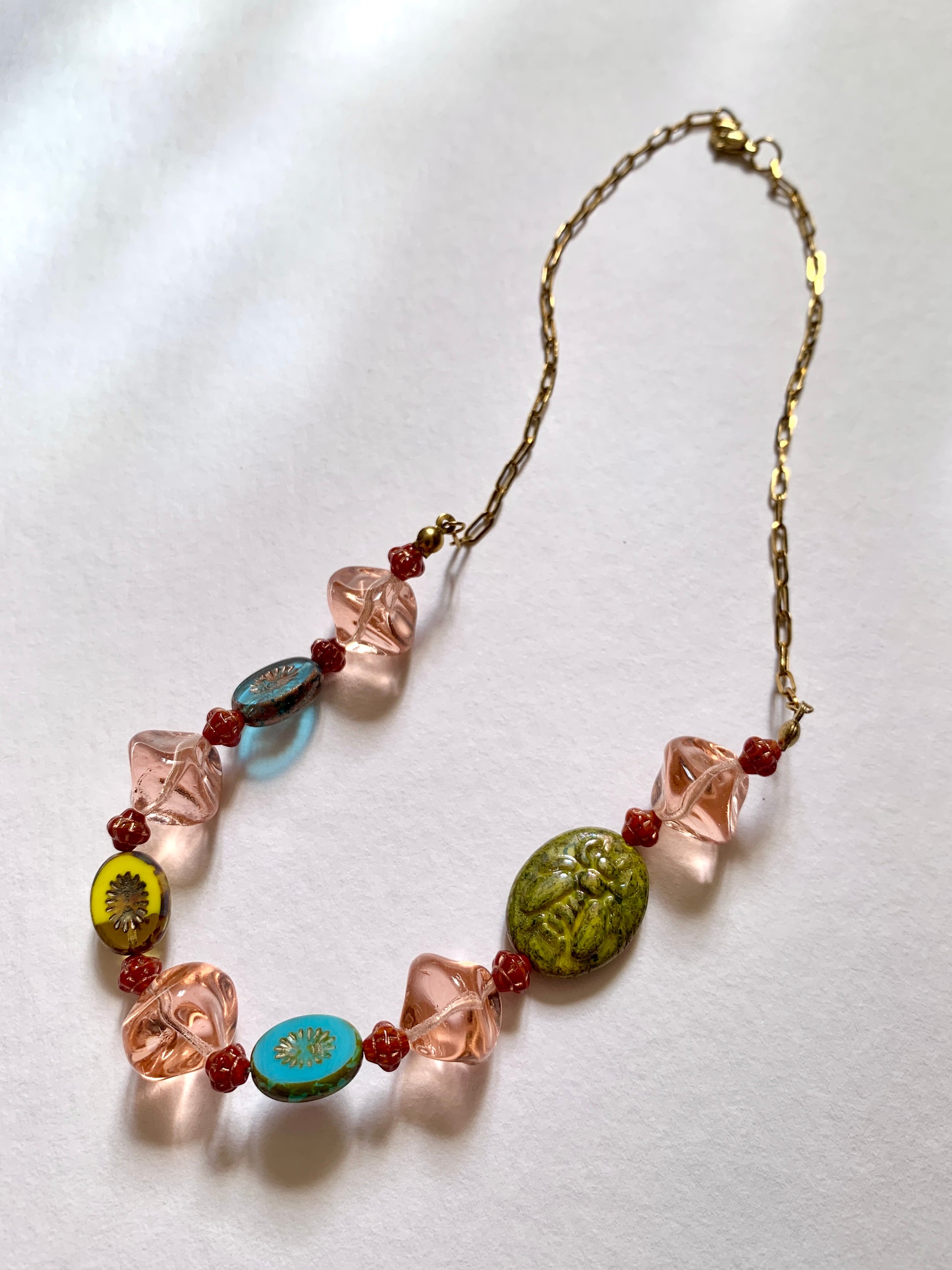 Certaines perles de ce bijou sont des trésors vintage, patiemment chinés, issues d’un ancien collier oublié, auquel nous avons offert une seconde vie. En les intégrant dans cette création, nous tissons un lien entre passé et présent, entre mémoire et renouveau.