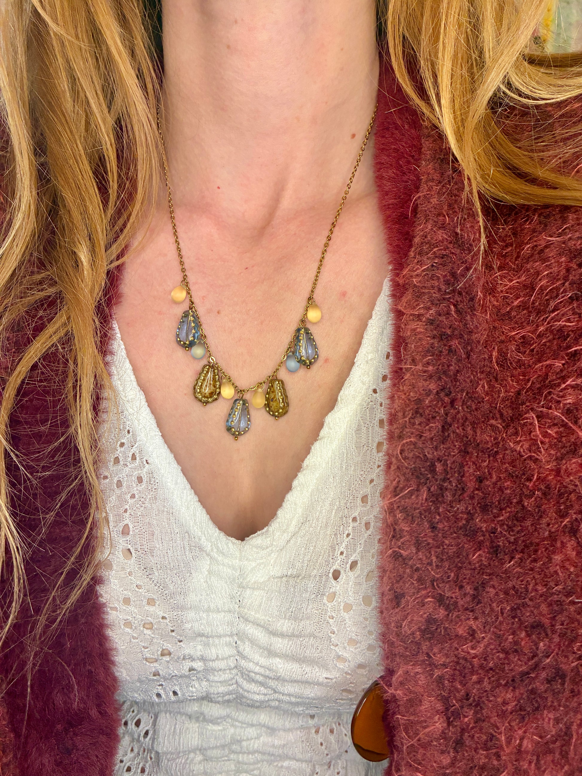 Les perles de verre sont délicates, comme des petites gouttes précieuses, elles demandent de l'attention. Evitez de le jeter au fond d'un sac ou de le faire tomber. Le verre aussi joli soit-il, reste fragile.