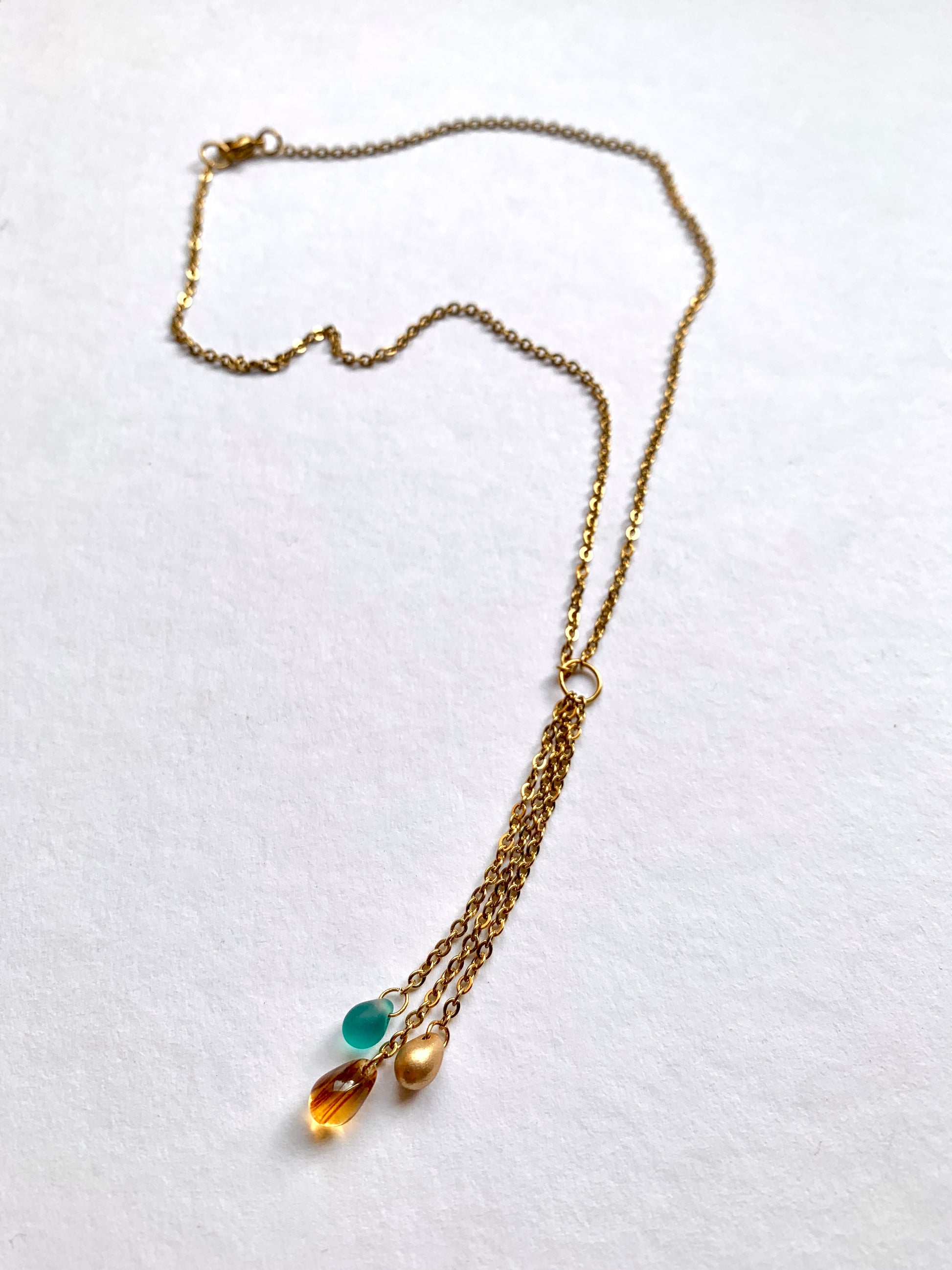 Les perles de verre sont délicates, comme des petites gouttes précieuses, elles demandent de l'attention. Evitez de le jeter au fond d'un sac ou de le faire tomber. Le verre aussi joli soit-il, reste fragile.
