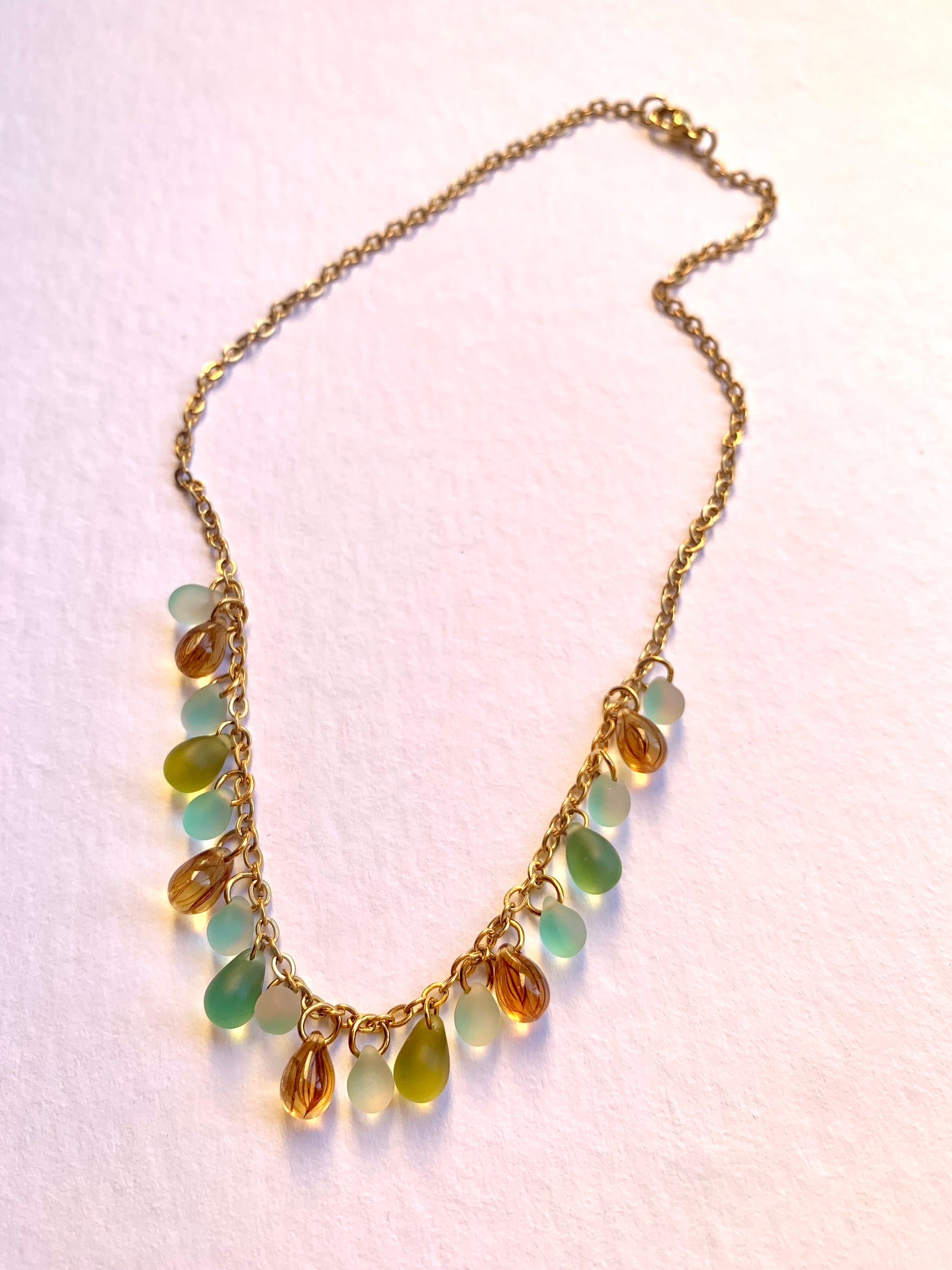 Les perles de verre sont délicates, comme des petites gouttes précieuses, elles demandent de l'attention. Evitez de le jeter au fond d'un sac ou de le faire tomber. Le verre aussi joli soit-il, reste fragile.