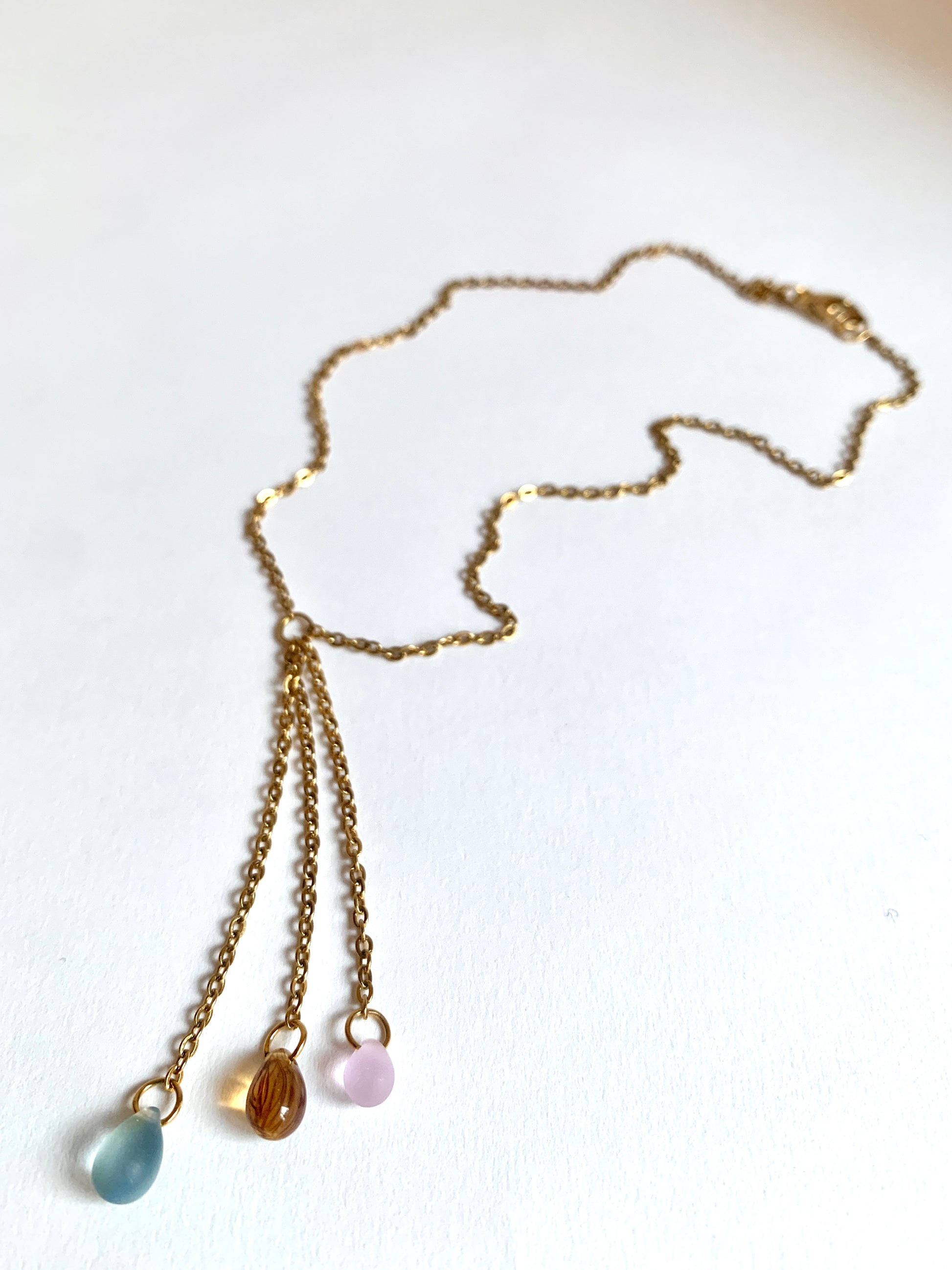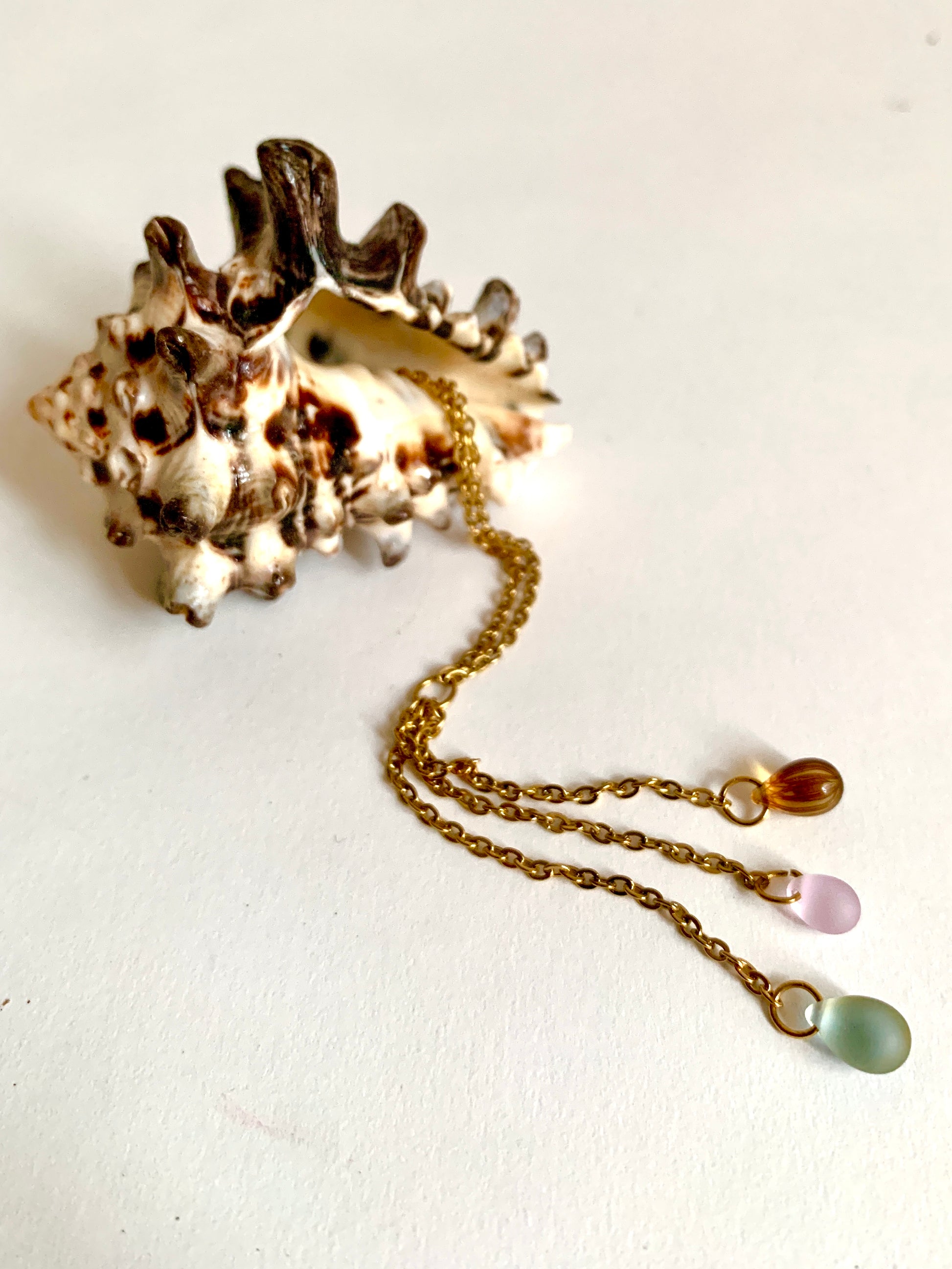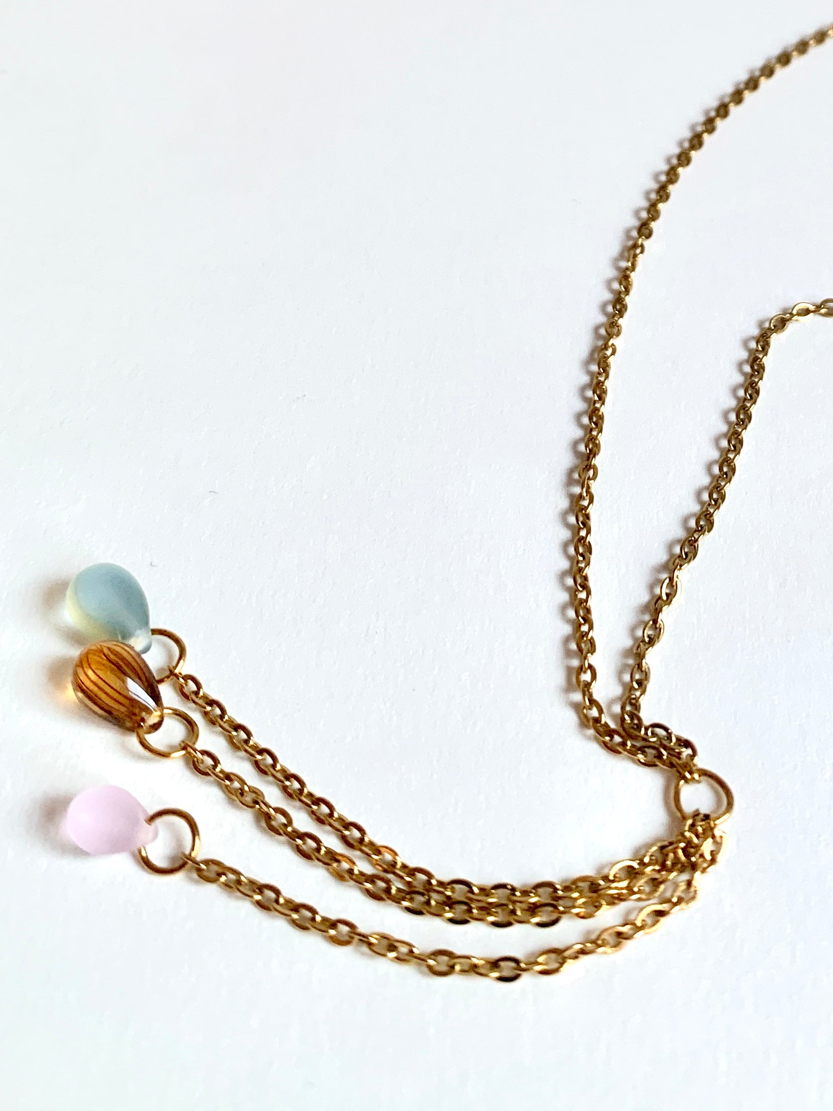 Les perles de verre sont délicates, comme des petites gouttes précieuses, elles demandent de l'attention. Evitez de le jeter au fond d'un sac ou de le faire tomber. Le verre aussi joli soit-il, reste fragile.