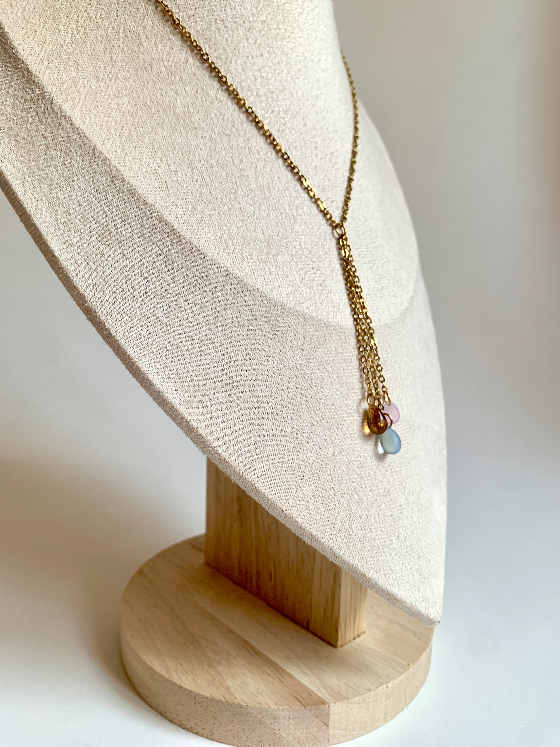 Un collier poétique et délicat, inspiré des balades sur la plage quand le soleil caresse l’horizon.