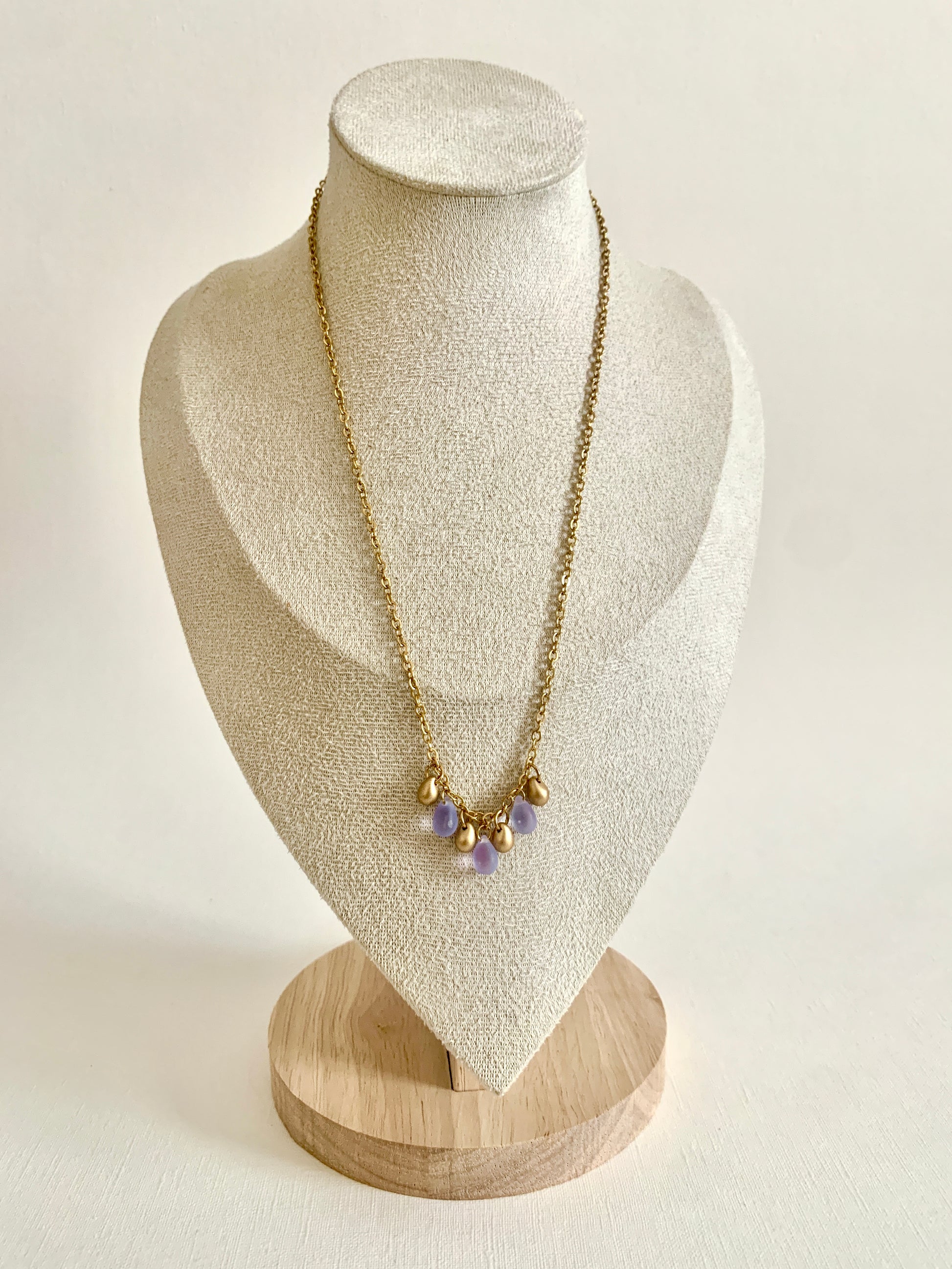 Les perles de verre sont délicates, comme des petites gouttes précieuses, elles demandent de l'attention. Evitez de le jeter au fond d'un sac ou de le faire tomber. Le verre aussi joli soit-il, reste fragile.