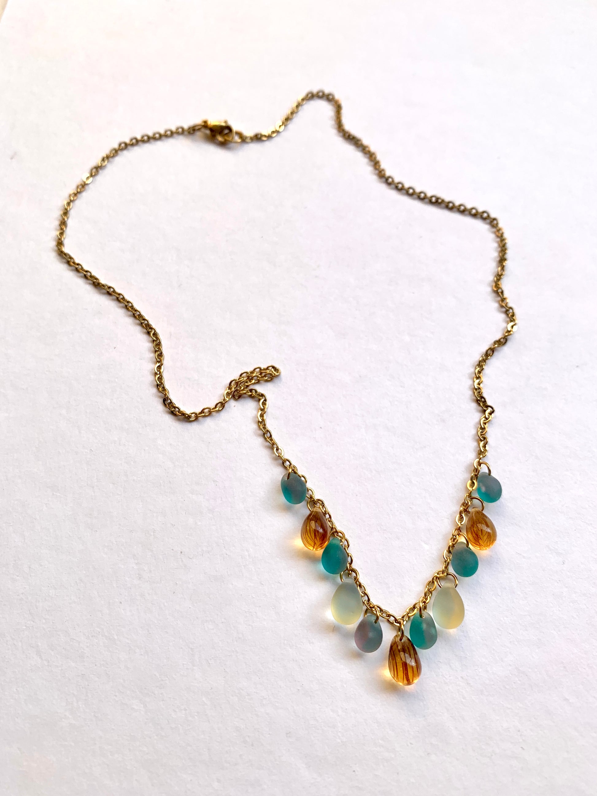 Les perles de verre sont délicates, comme des petites gouttes précieuses, elles demandent de l'attention. Evitez de le jeter au fond d'un sac ou de le faire tomber. Le verre aussi joli soit-il, reste fragile.