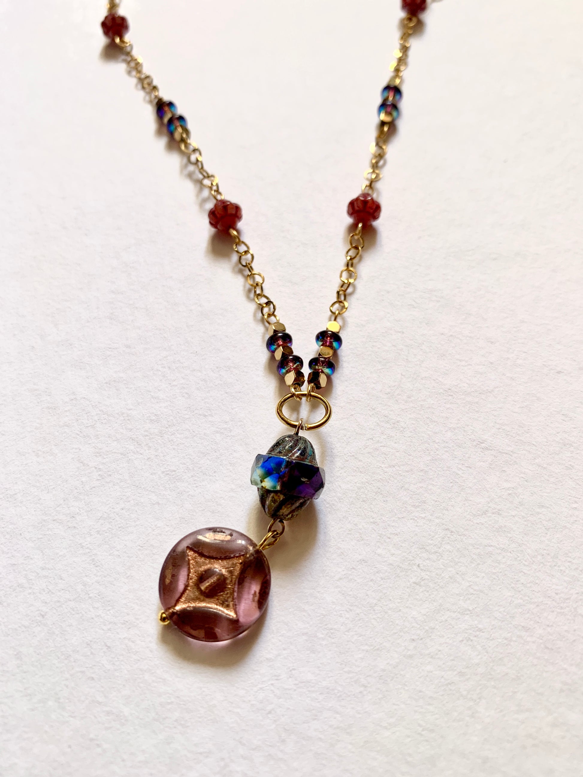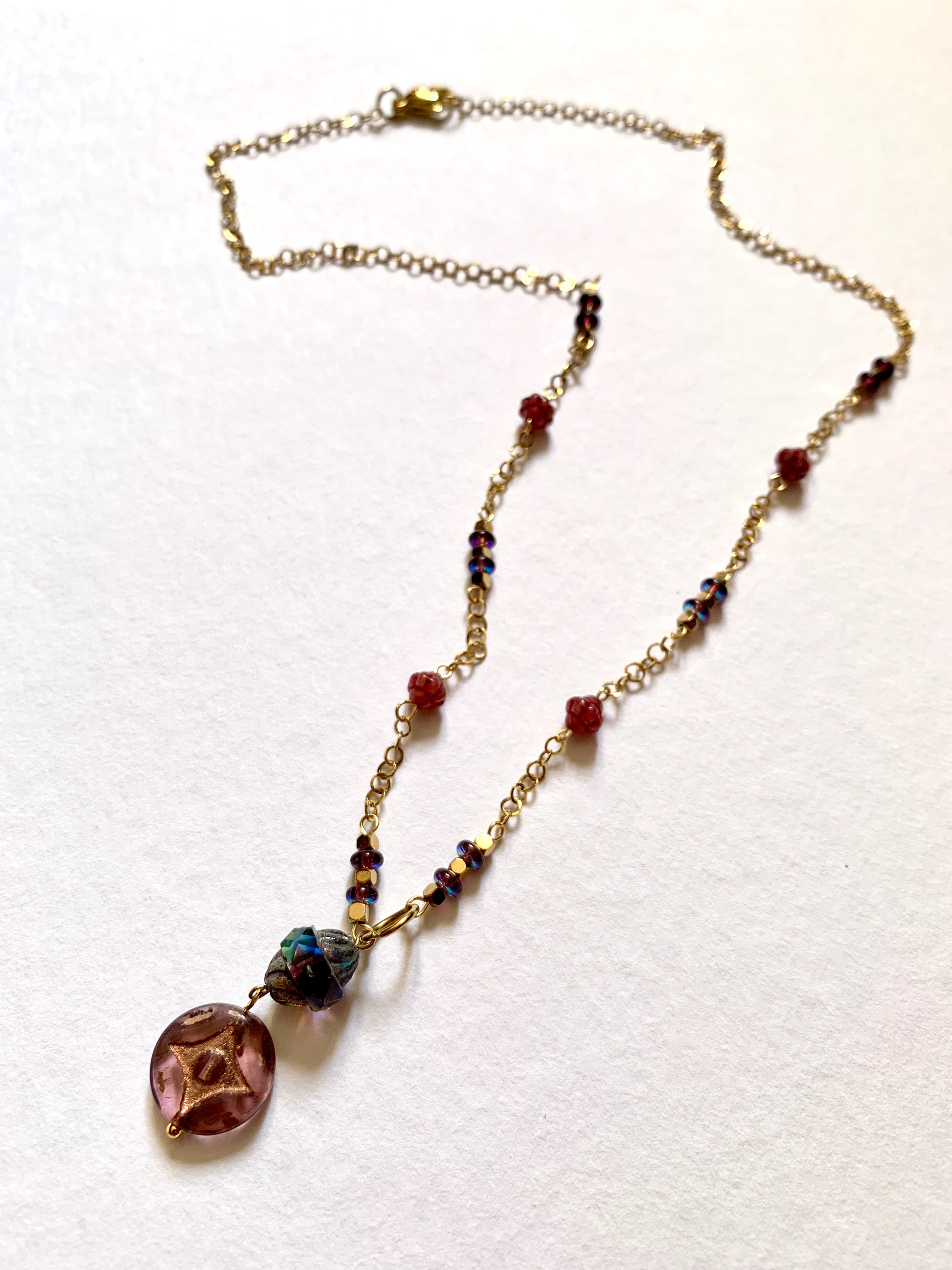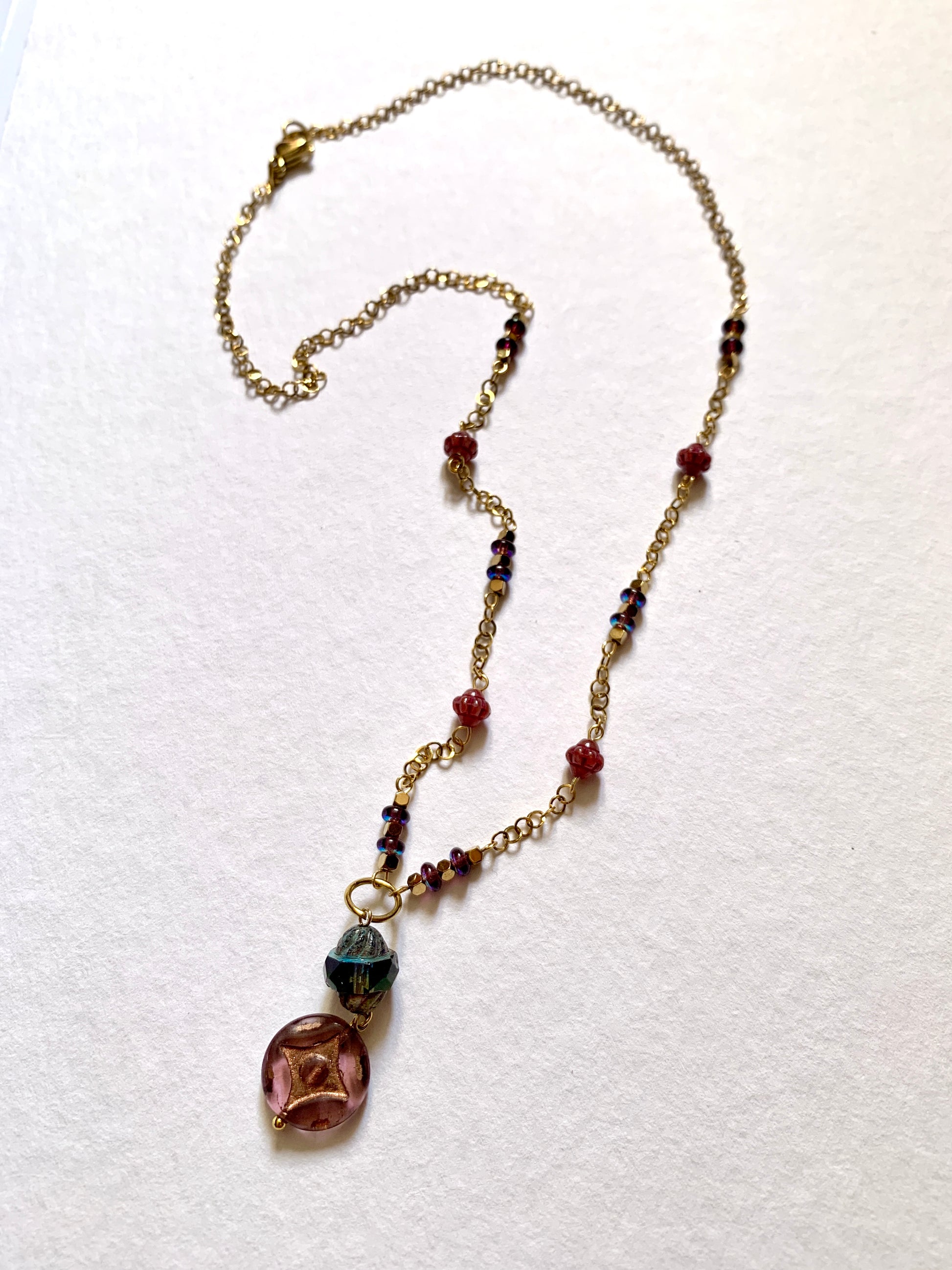 Perles de verre et Hématites dorées.