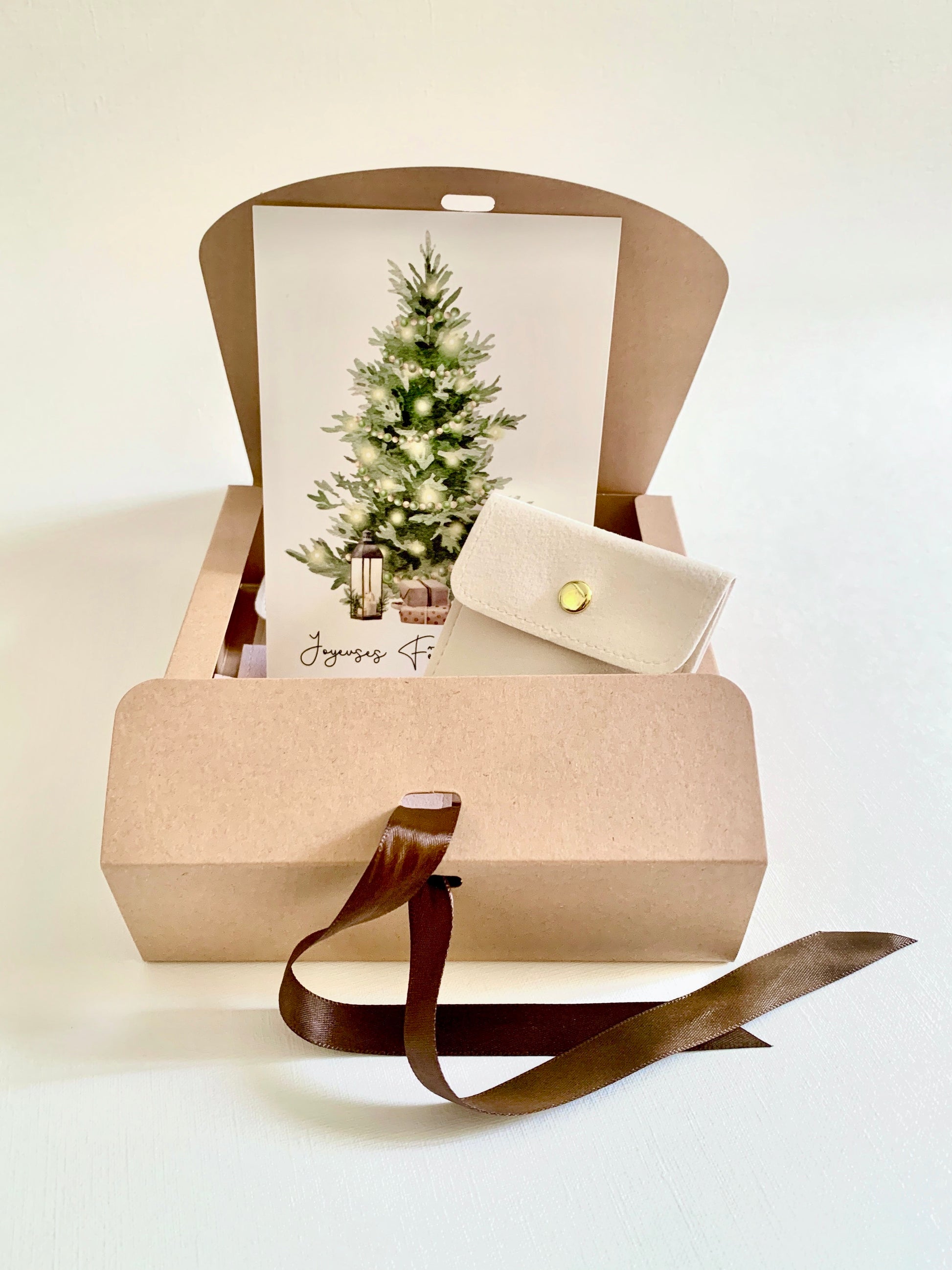 Dans le coffret cadeau vous trouverez les pochettes pour chacun des bijoux ainsi qu’une petite aquarelle derrière laquelle se trouve l’histoire de chaque pièce.