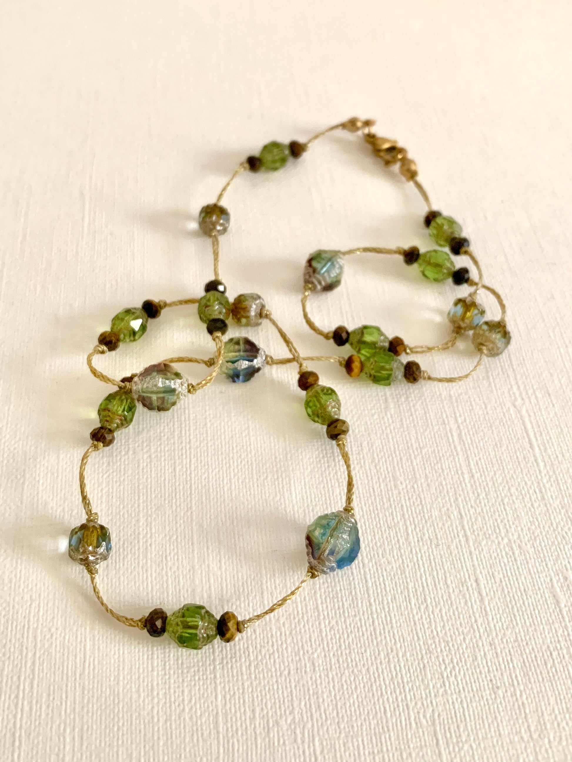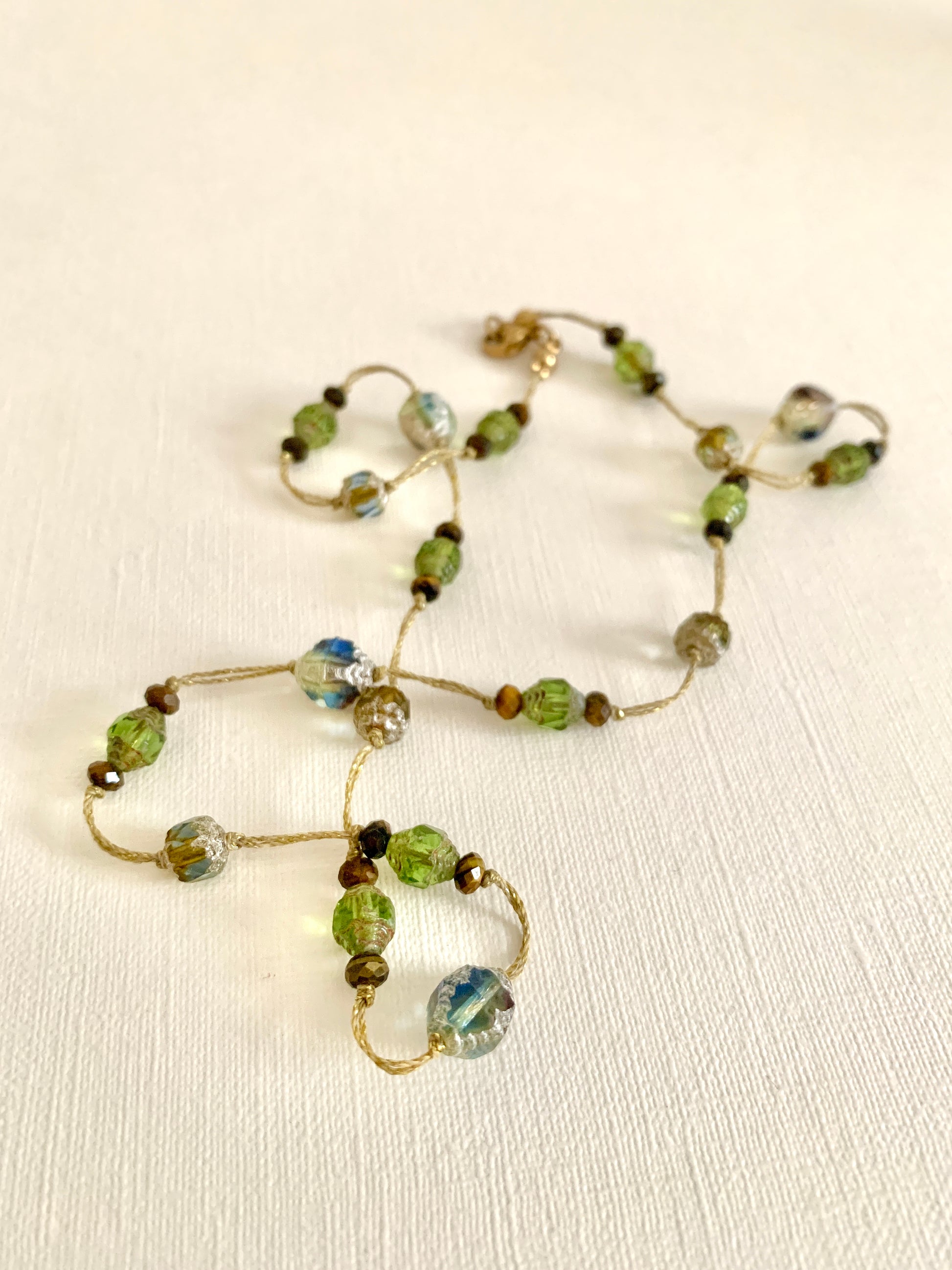 Inspiré du parc du Mugel à La Ciotat, mon lieu préféré dans le sud, ce collier en perles de verre capture la lumière et la sérénité de cet endroit unique.