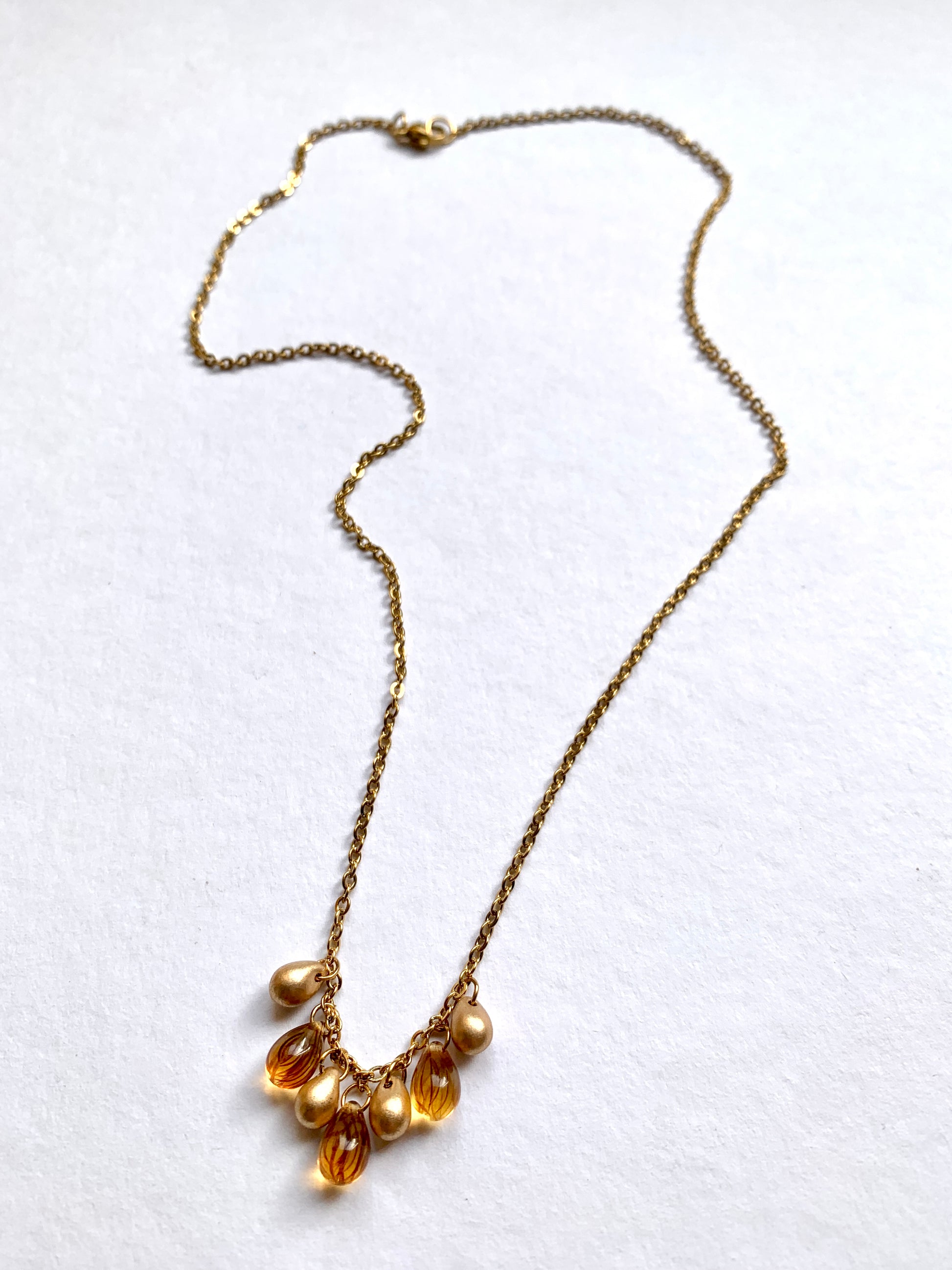 Les perles de verre sont délicates, comme des petites gouttes précieuses, elles demandent de l'attention. Evitez de le jeter au fond d'un sac ou de le faire tomber. Le verre aussi joli soit-il, reste fragile.
